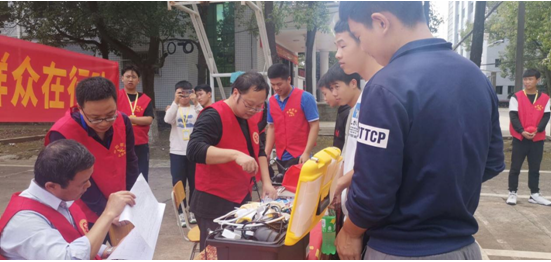 居民们就把家里搁置已久又舍不得丢的小家电拿来维修,志愿者们有条不紊的工作着,登记报修名单,仔细查找、分析每一件小家电存在的问题,积极处理检查出的问题。对无法修好的电器认真地说明损坏原因,提供维修建议。维修的同时,向居民们耐心地讲解家电使用和保养方法。20余件废旧家电在志愿者们的巧手下又“重获新生”,家电修复率达到80%。此次志愿者活动让居民在家门口就享受到学院带来的便利生活,深受居民的欢迎和好评。