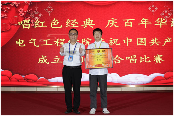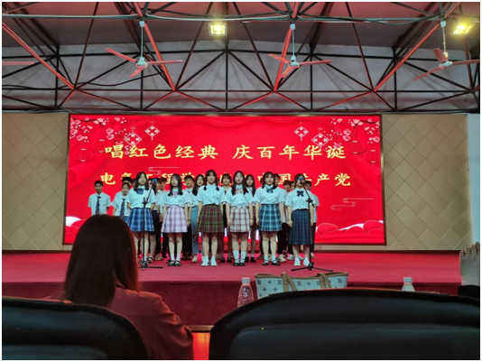 为庆祝中国共产党建党100周年华诞,热情讴歌党领导人民革命、社会主义建设和改革开放所取得的辉煌成就,2021年5月20日下午,电气工程学院团总支主办的庆祝中国共产党成立100周年,唱红色歌曲合唱比赛在电气工程学院大礼堂隆重举行,电气工程学院院长王澜、电气工程学院党总支书记蒋宏杰等领导与百余名师生共同观看了演出。