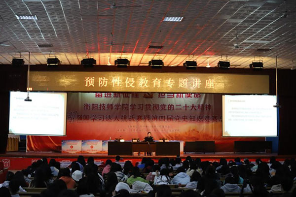 为了引导学生认识到什么是性侵害,了解性侵害的主要形式,切实提高学生的自我保护意识和安全防范能力 。11月24日,衡阳技师学院邀请衡南县公安局团委书记邓姿姿在学院大礼堂举办预防性侵教育专题讲座,700余名学生代表参加讲座。