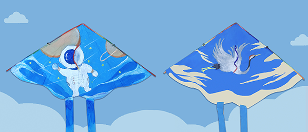 “看!这是我画的!”22级计软高技班的袁俊杰同学自信举起风筝。“虽然我没有学过美术,但我对中国画特别有兴趣,我想用青绿表达《千里江山图》中山的层峦叠嶂。”