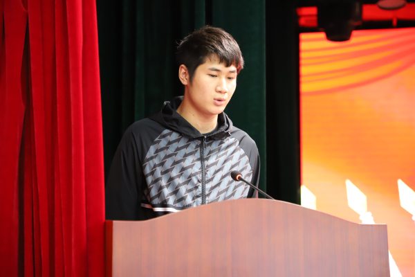 在2023年学院庆祝共青团成立101周年暨团学工作表彰大会上,学院授予邓宏意捐献造血干细胞特别贡献奖,并对他的善举给予表彰奖励。邓宏意作为优秀典型代表发言说道:“我生活在一个美好的时代,我愿意把仁爱之心、无私奉献这样的中华美德传承下去。为社会奉献绵薄之力的同时,也让自己实现了人生价值。希望能通过自己的实际行动,带动更多的人加入到造血干细胞志愿者的行列来,为更多的患者带来生命的希望。”