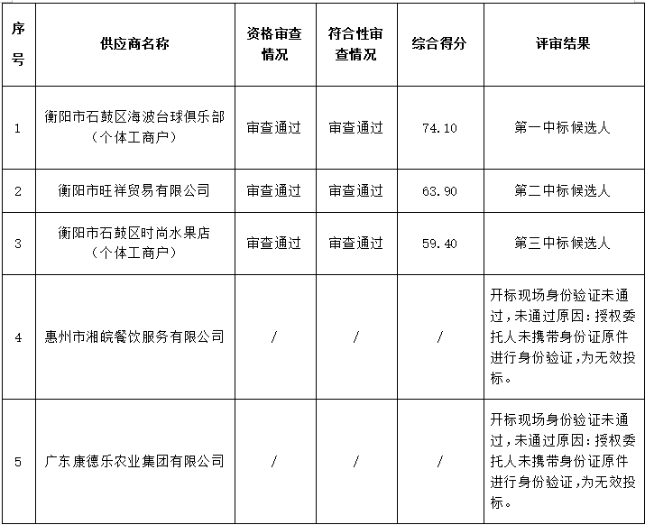 衡阳技师学院1、2号商店合作经营项目院内自主招标于2025年8月7日结束,现将中标结果公告如下: