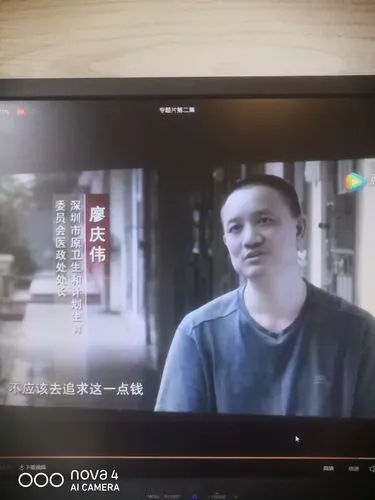 廖庆伟(深圳市原卫生和计划生育委员会医政处处长):事实上我非常后悔,不应该去追求这一点钱,但是确实是事实摆在那个地方,已经涉及到这个里面了,必须得承认这个事实。