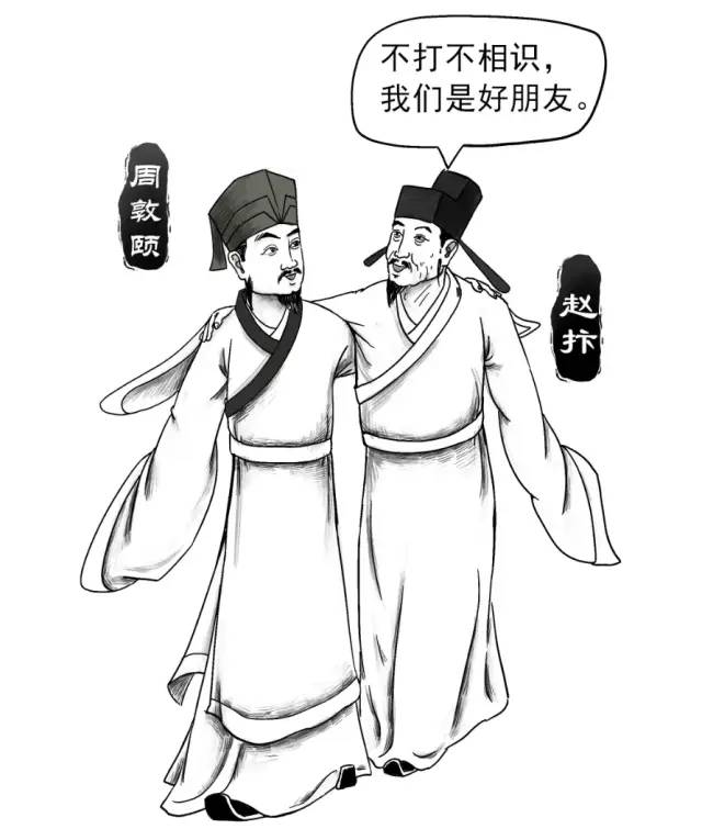 1060年,43岁的周敦颐任虔州(今江西)通判,顶头上司是与“黑脸”包公齐名的“铁面御史”赵抃。赵抃曾收到反映周敦颐沽名钓誉不务实功的举报,故对初到虔州的周敦颐不冷不热。但周敦颐不卑不亢,不矜不伐,用心履职,最终赢得赵抃认可。他因病退隐后,仍被赵抃多次举荐。