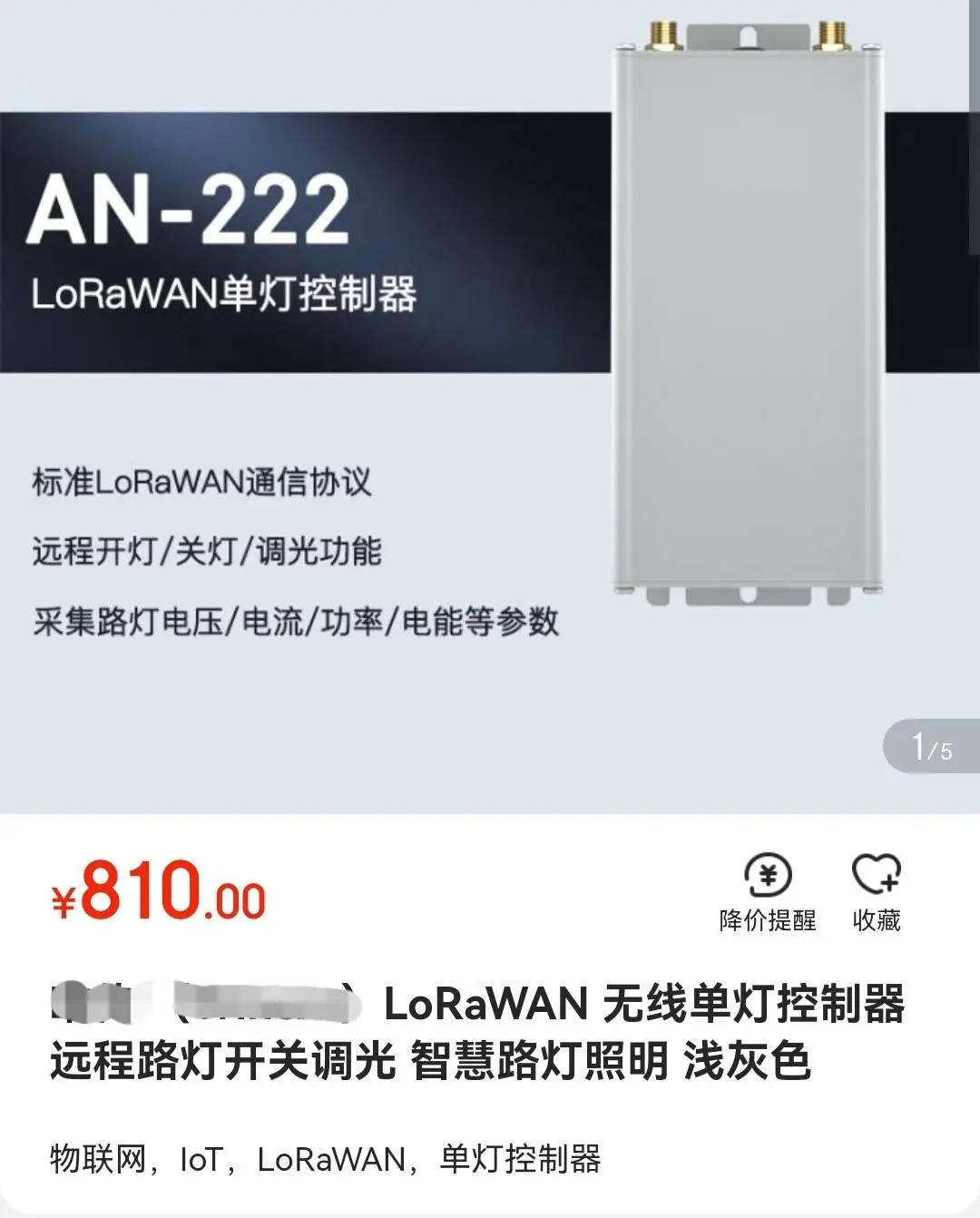 厂商官网显示,AN222单灯控制器是一款路灯节能产品,可以对单盏路灯的电压、电流、功率、电能等工作参数进行监控与采集,同时具有控制路灯开关和调光等功能。该公司电商平台的旗舰店中,同型号产品售价为810元。