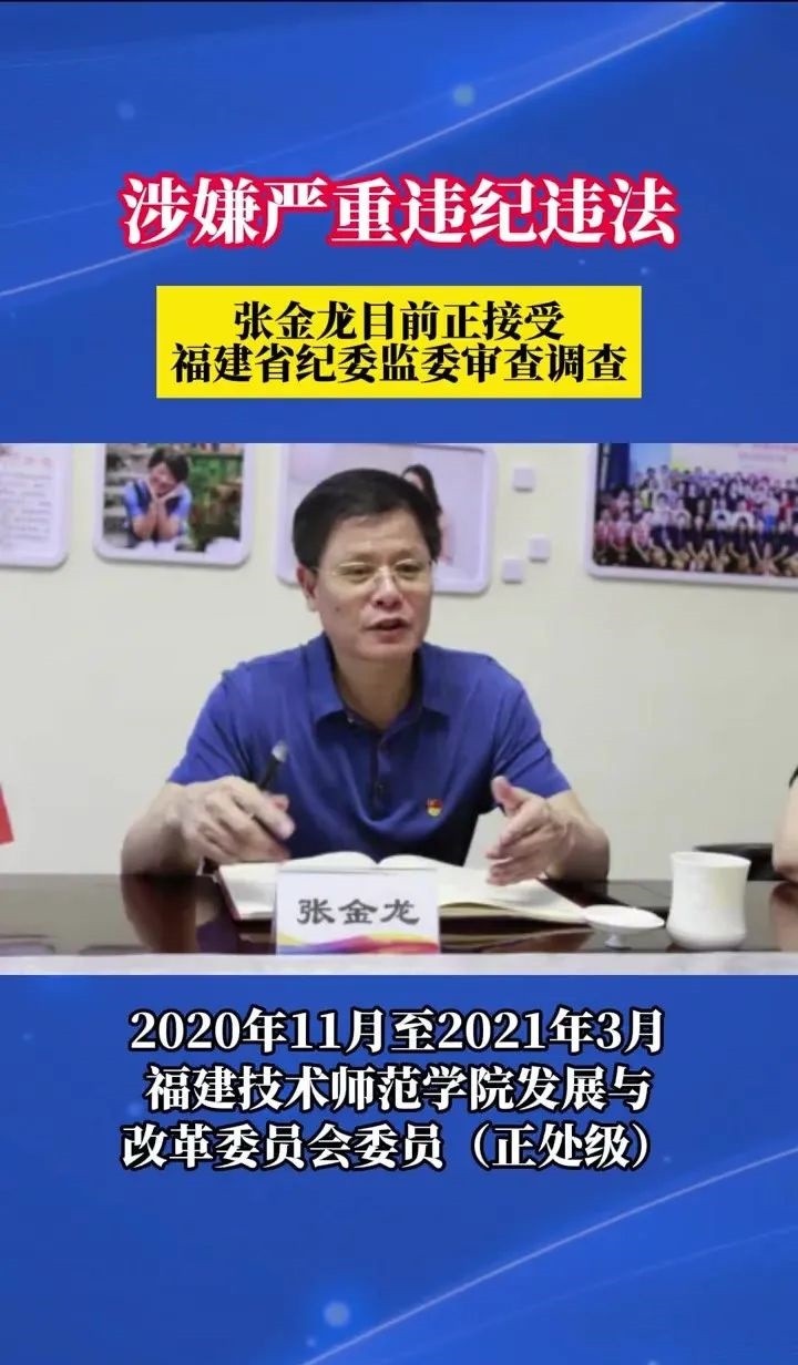 福建幼儿师范高等专科学校党委委员、纪委书记张金龙接受审查调查