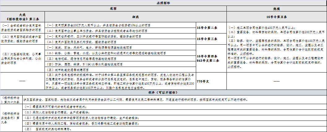 (三)关于招标范围列举事项。依法必须招标的工程建设项目范围和规模标准,应当严格执行《招标投标法》第三条和16号令、843号文规定;法律、行政法规或者国务院对必须进行招标的其他项目范围有规定的,依照其规定。没有法律、行政法规或者国务院规定依据的,对16号令第五条第一款第(三)项中没有明确列举规定的服务事项、843号文第二条中没有明确列举规定的项目,不得强制要求招标。