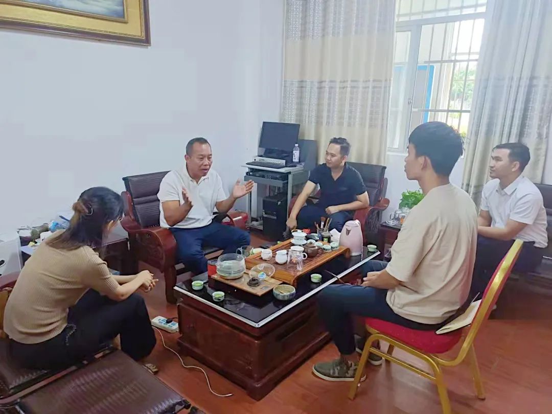 茂南区团委副书记、挂职金秀县委办副主任江灵进,团县委挂职副书记韦晓玲,团县委干事李卫洋,金田小学陶永英老师与逐梦心光的全体队员合影