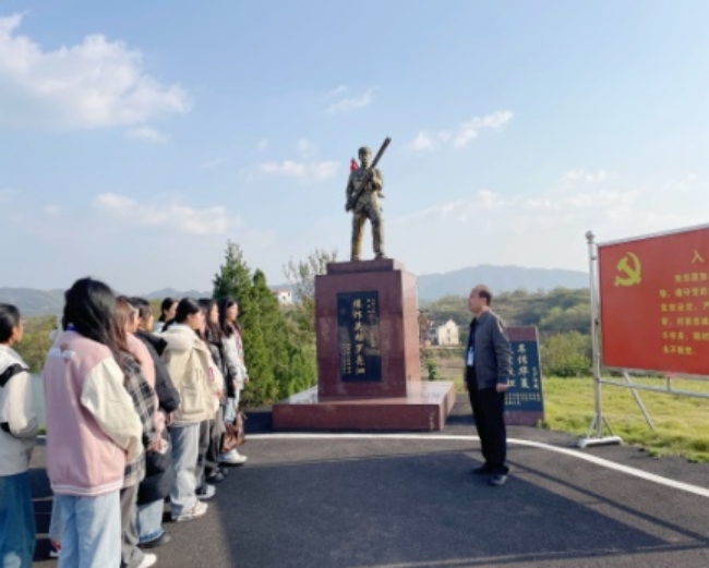 经贸旅游学院党总支专职副书记段金平为学生讲解革命历史