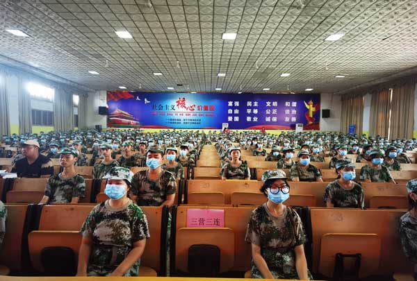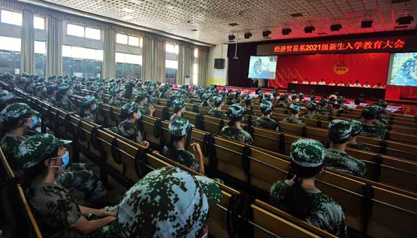 9月5日下午三点,经贸系组织2021级新生在学院大礼堂召开入学教育大会。经贸系行政领导、各教研室主任及新生班主任、连队教官参加大会。会议由综合科科长唐佳洁主持。