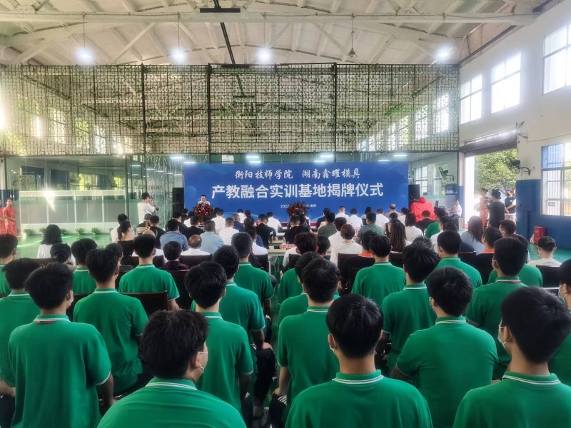 2022年9月27日上午在学院实习工厂举行了衡阳技师学院与湖南鑫耀模具配件有限公司产教融合实训基地揭牌仪式。学院党委班子成员,部分中层干部,智能制造学院部分师生和鑫耀模具公司领导,员工参加了揭牌,东莞市近20家模具行业企业老总远赴衡阳,莅临学院,对产教融合实训基地的揭牌和开工,表示热烈祝贺和诚挚的祝福!