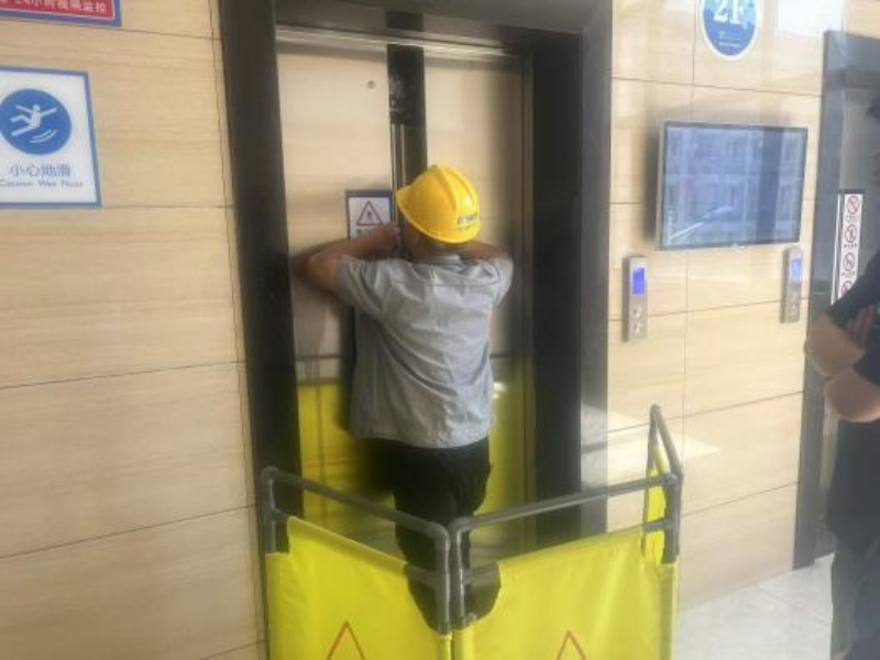 电梯平层后,救援人员用三角钥匙打开电梯门,将被困人员安全救出,此时被困人员情绪稳定,未出现异常。