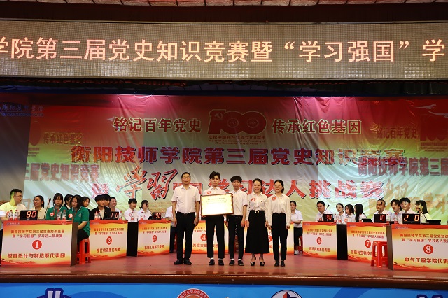 本网讯 为持续深化党史学习教育,激发学生对党史知识学习的热情,营造学习党史的浓厚氛围,衡阳技师学院在全院范围内开展了“铭记百年党史,传承红色基因”为主题的党史知识竞赛暨“学习强国”学习达人挑战赛。5月26日下午,党史知识竞赛总决赛在衡阳技师学院大礼堂举行。