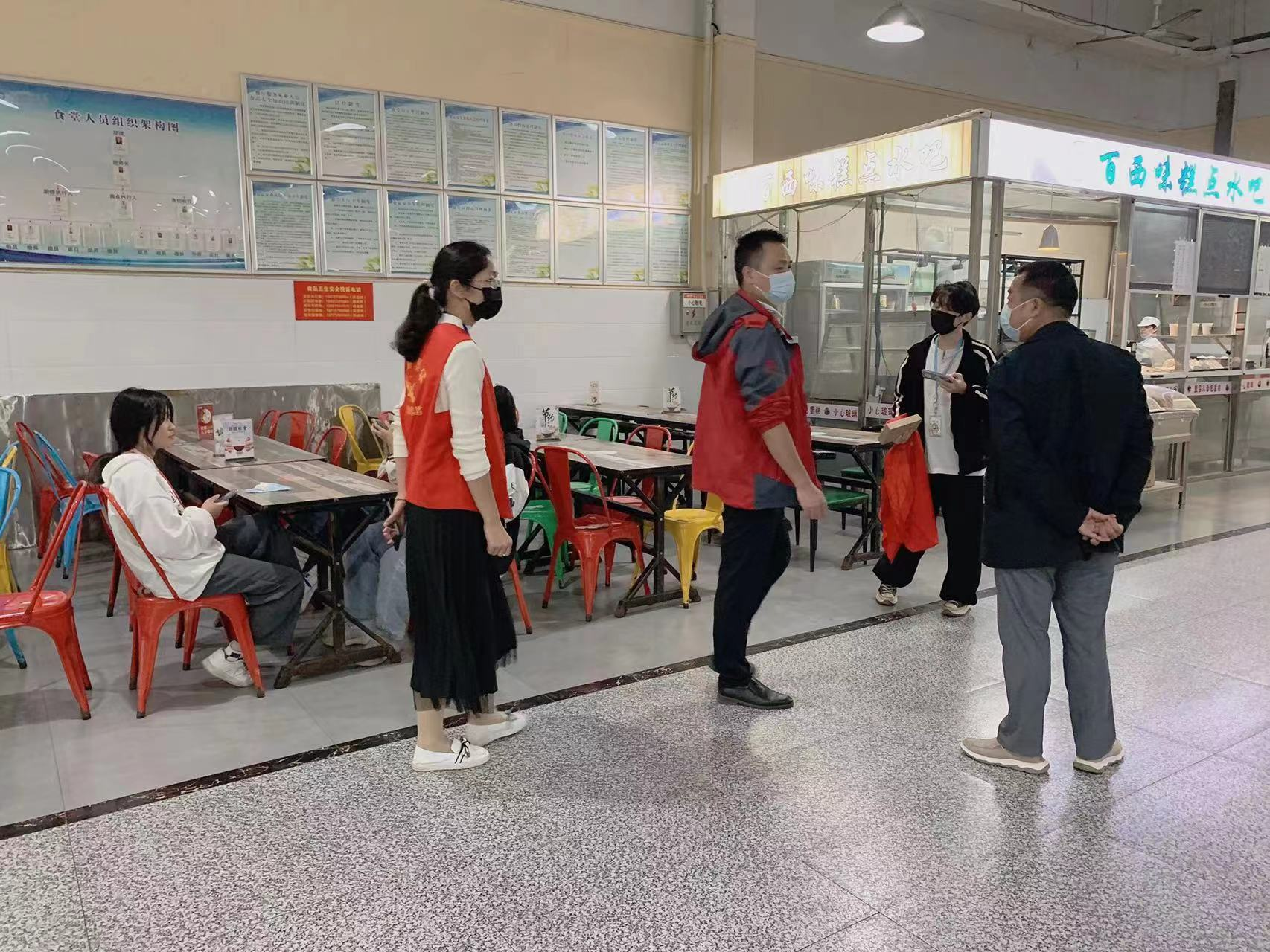 一实践。结合文明校园建设,全体党员分成三组分别深入校园公共区、学生食堂、学生宿舍检查校园不文明行为,督促学生养成良好的卫生习惯、行为习惯。同时了解学生在生活中存在的问题,关心疫情防控下学生心理健康,尽力帮助学生解决问题,让学生感受到学院的关爱。“一课一片一实践”活动的开展,提升了广大党员的党员意识和政治素质。